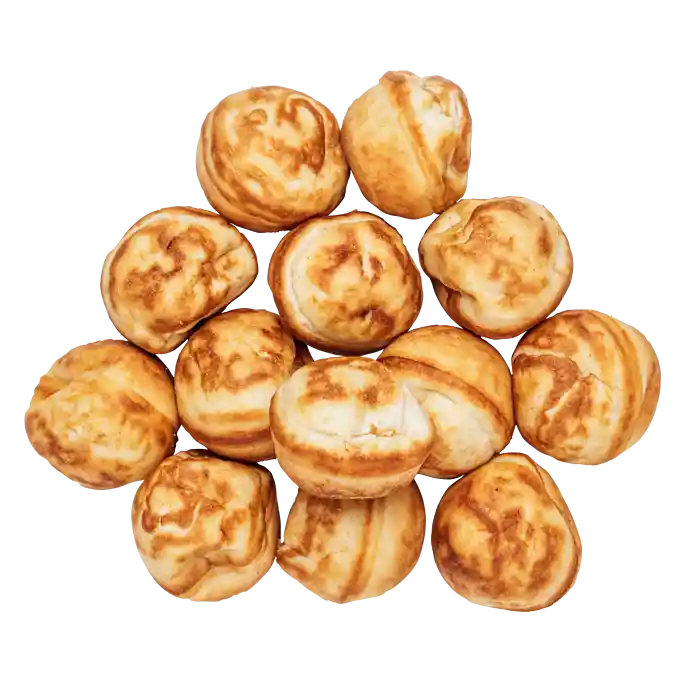 Lette og luftige æbleskiver efter traditionel opskrift. Server dem lune med flormelis og Aarstidernes jordbærmarmelade.