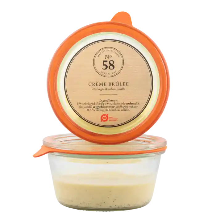 Økologisk crème brulée fra Mattsson Nielsen i glas, 100 g. Passer til 1 servering.