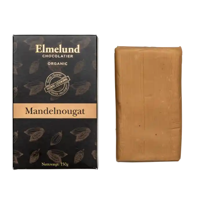 Økologisk mandelnougat fra Økoladens 'Elmelund'-serie, 150 g.