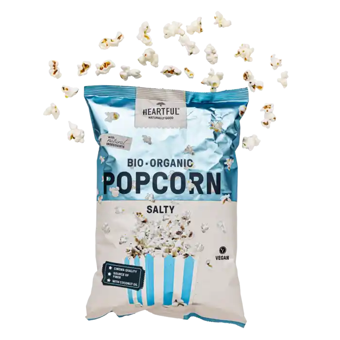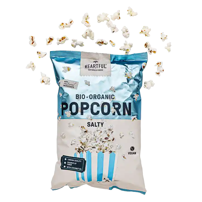 Økologiske popcorn med havsalt fra Heartful, 60 g.