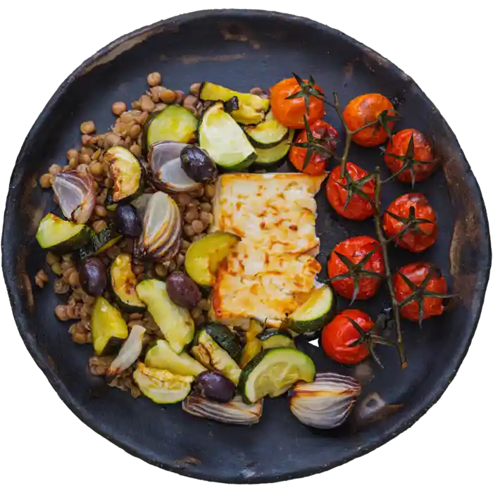 Grøntsagerne er i centrum, suppleret af vegetabilske proteiner som bælgfrugter, korn og ris samt spændende veganske specialiteter som falafelfars, gnocchi, seitan-tofu og pizzadej.