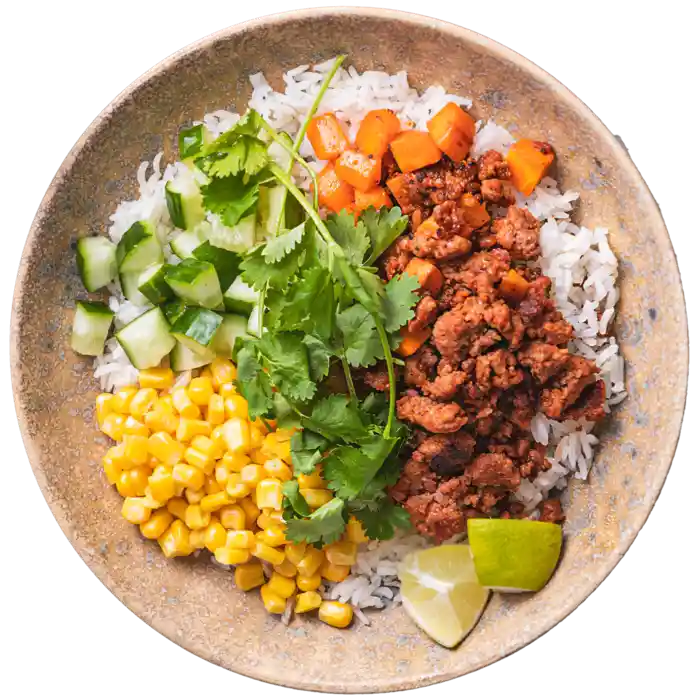 Måltiderne suppleres med bælgfrugter, ris, nødder, kerner, friske krydderurter, vores egne unikke krydderiblandinger samt udvalgte glutenfri kolonialvarer.