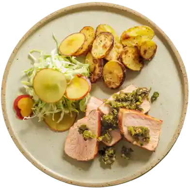 Alle måltiderne er 100 % økologiske, og opskrifterne er udviklet, så du ikke behøver stor køkkenerfaring for at være med. I opskriftshæftet finder du trin-for-trin-vejledninger og billeder af alle retterne, så det er let at gå til.
