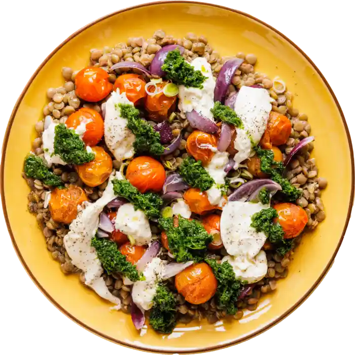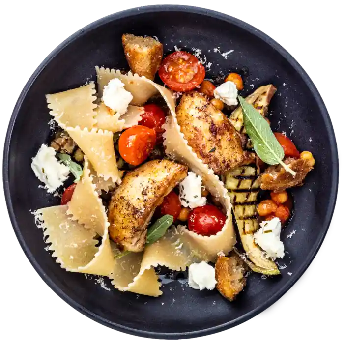 Måltiderne suppleres med bælgfrugter, ris, nødder, kerner, friske krydderurter, vores egne unikke krydderiblandinger samt udvalgte glutenfri kolonialvarer.