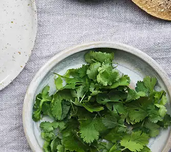 Friske krydderurter er sarte – og særlig koriander. Spis det hurtigst muligt, mens aroma og smag er på toppen. Kan opbevares et par dage i et lille glas med vand i køleskabsdøren eller på køl i en lufttæt beholder med et stænk vand.