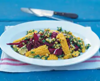 I Italien rister man ofte radicchio i en god olivenolie. Det tager lidt af bitterheden. Så hvis du har lyst, kan du skære den i både, riste den i lidt olivenolie - gerne sammen med en smule hakket hvidløg. Prøv evt. at dryppe den med appelsinsaft efter den er blevet ristet. Og skal radicchioen være endnu mindre bitter, og mere over i det søde, kan der blandes lidt sukker eller honning i appelsinsaften, før den dryppes over salaten.