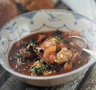 11. Blokmkålssuppe med bagt fisk, og drys af blomkål, forårsløg og dild