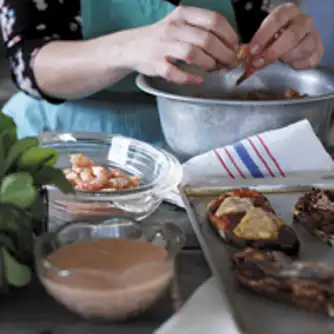 2. Pil-selv-rejer med bruschetta og 1000 øer dressing