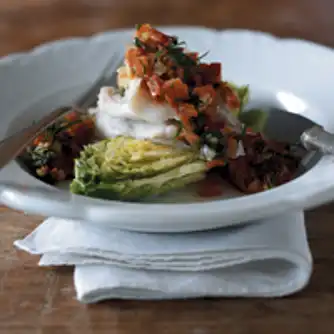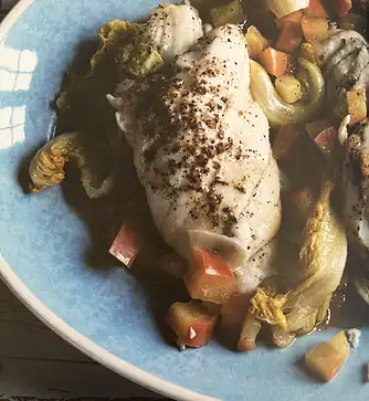 3. Pocheret skrubbe med iceberg og tomatsmør