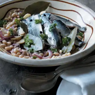 10. Syltede sild med hvide bønner