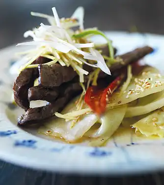 5. Kornsalat med pak choy, sort peber og ingefærsalsa