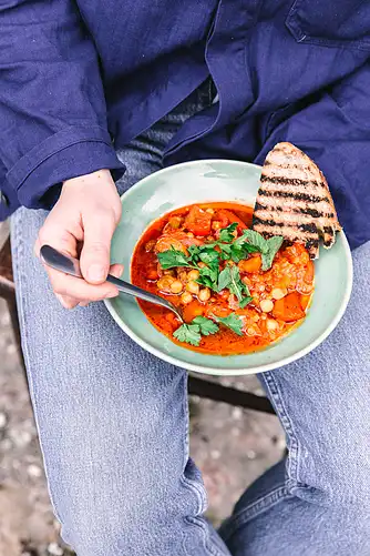 8. Kyllingegryde med røde linser og aspargessalat med estragon