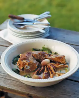 12. Lammebov i kokosmælk med spinat og løg